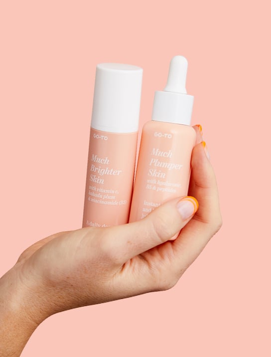 This serum duo is essential for every face, every day. Much Brighter Skin brings glow in the AM, while Much Plumper Skin gives hydrates in the PM.